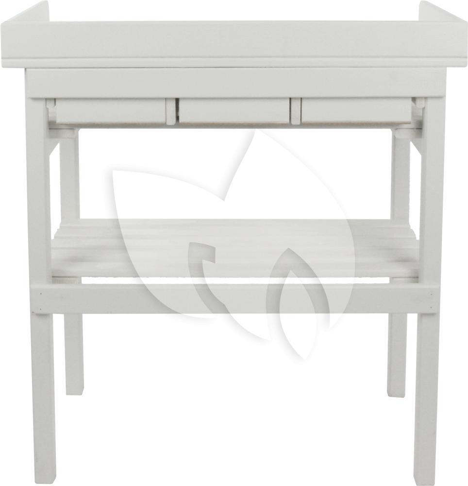 De tuinwerktafel heeft een lengte van 78 centimeter, een diepte van 38 centimeter en een hoogte van 83 centimeter. De witte kleur geeft de tafel een stijlvolle uitstraling welke mooi staat in iedere ruimte.