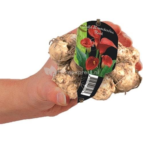 De roodkleurige Calla Zantedeschia is prachtig voor in de tuin. De bloembol is te plaatsen in de volle grond of in een bloempot. Door deze mooie kleur is dit een echte aanwinst voor in de tuin. Geniet tijdens de mooie dagen van deze sfeervolle en kleurrijke bloem.