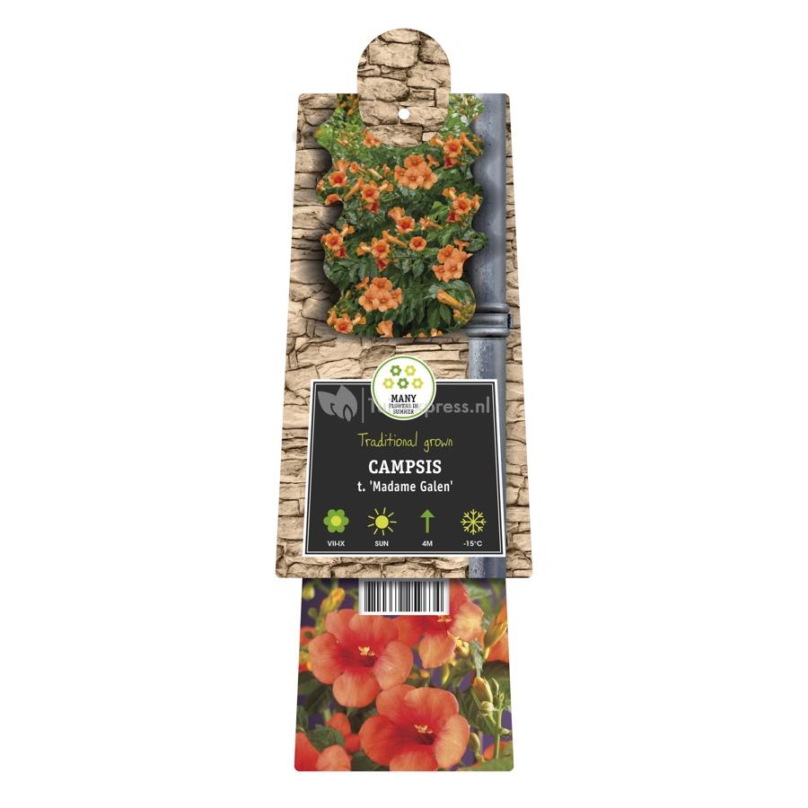 Deze oranje trompetbloem is een kruising tussen twee trompetbloem soorten, de grandiflora en de radicans. Het beste van beide soorten is samengekomen in deze oranje trompetbloem en is daarmee een schot in de roos! Deze klimplant is zeer populair, goed winterhard en redelijk makkelijk in onderhoud. De oranjerode bloemen hangen aan het uiteinde van de stelen. Omdat de plant erg zwaar kan worden is het aan te raden de plant te ondersteunen met spandraad waar de plant langs geleid wordt; de wortels zijn niet altijd opgewassen tegen het gewicht van de plant. Waan u in mediterraanse sferen met de aanschaf van deze oranje trompetbloem.